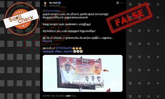 In the above context, an image of a billboard is being widely shared on social media, in which we can see a Tamilaga Vettri Kazhagam party poster, in which the left shows the picture of actor-politician Vijay and the right we have image of Prime Minister Narendra Modi.