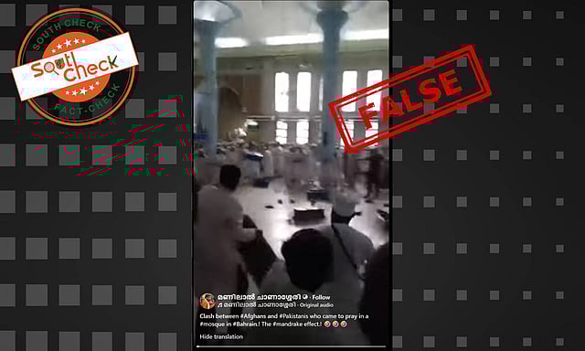 A social media user shared the video with a caption that reads, “#Afghans and #Pakistanis who came to pray at a #Mosque in #Bahrain clashed! #Mandrake Effect.!?” (Translated from Malayalam)