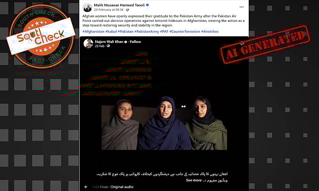 A hyperlocal Pakistani channel, Khyber TV, shared the clip on its Facebook page on February 23 with a caption implying the video was an AI creation. The caption stated that Khyber News TV had aired a fake report claiming Afghan women supported Pakistani airstrikes and demanded an end to the ‘transitional’ regime, and that the words attributed to a woman were manufactured using artificial intelligence and not real. It also noted that the report had sparked strong and sarcastic backlash on social media.