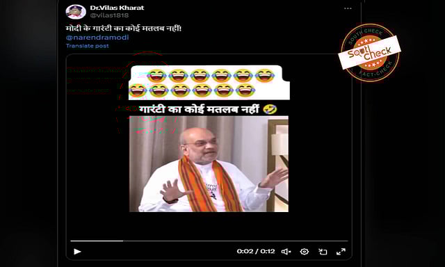 A video is widely being shared on social media in which Home Minister Amit Shah is heard saying: “This is why I say that there is no meaning of this guarantee. They say it before elections and then forget.”