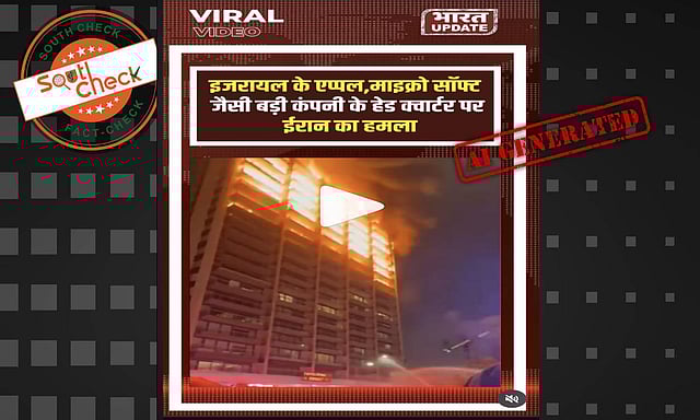 Text embedded in the video reads, “Iran’s attack on the headquarters of major companies like Apple and Microsoft in Israel.” (Translated from Hindi)