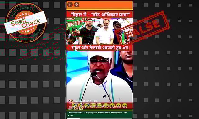 The video was shared with a caption claiming that, “Rahul ji and Tejaswi will drown you – Kharge saheb said in Vote Adhikar Yatra Bihar.” (Translated from Hindi)