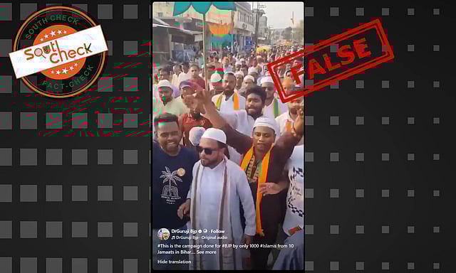 Amid the ongoing State Assembly elections in Bihar, with the first phase of polling held on November 6 and the final phase scheduled for November 11, a video is widely being shared in which people are seen wearing skull caps, saffron shawls and holding placards with the lotus symbol while chanting slogans in a rally.