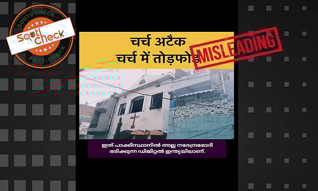 The video has Hindi text on it that reads, “Church attack, vandalism in church.” Another Malayalam text embedded on it reads, “This is not in Pakistan but in Digital India ruled by Narendra Modi.”