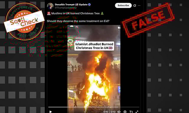 A video is being widely shared on social media in which a Christmas tree inside a mall is seen on fire.