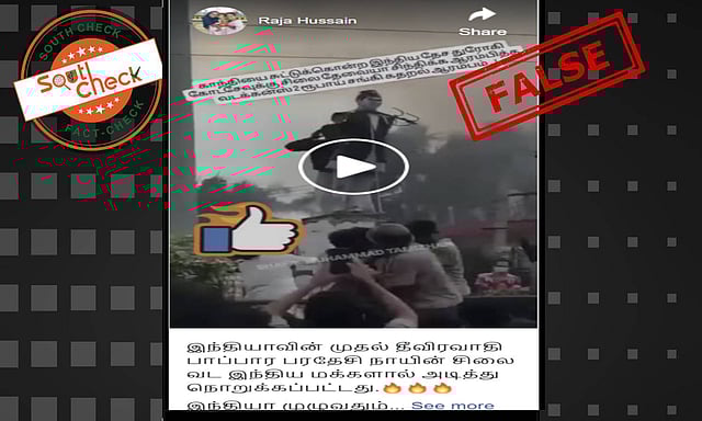 A social media user shared the video with the caption: “India's first terrorist. Statue of Papara Pardesi dog beaten and smashed by North Indians. All over India. The day is not far away when RSS Hindutva terrorist papara dogs will be beaten and chased away.”