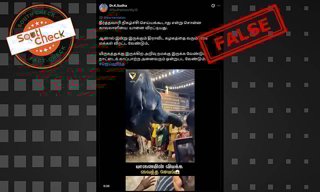 A social media user shared the video with a caption that reads, “The elephant chased away the policeman who tried to stop the puja. But it is the Dravidian party that exists today that must be chased away by the people in 2026. We must have the intelligence that the animal has; to save the nation, everyone must unite.” (Translated from Tamil)