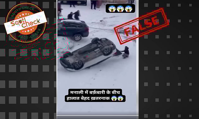 The text embedded in the video reads, “Situation in Manali is extremely dangerous due to snowfall.” (Translated from Hindi)