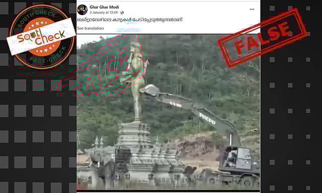 An image is being widely shared on social media in which a statue of a Hindu deity is being dismantled. The photo was shared with a caption suggesting that it shows religious desecration in Bangladesh.