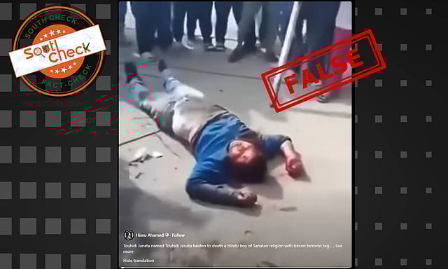A social media user shared the video with a caption that reads, “The thugs named Towhidi Janata beat and killed a Hindu boy of Sanatan Dharma with the ISKCON militant tag.. #militant #mob_terrorism #Bangladesh.”