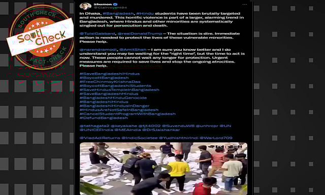 A social media user shared the video and wrote, “In Dhaka, #Bangladesh, #Hindu students have been brutally targeted and murdered. This horrific violence is part of a larger, alarming trend in Bangladesh, where Hindus and other minorities are systematically singled out for persecution and death. (sic)”