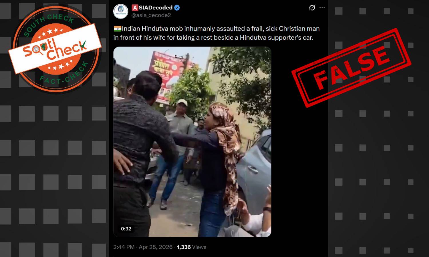 The video is shared with a caption suggesting that a ‘Hindutva mob’ was seen assaulting a Christian man in front of his wife.