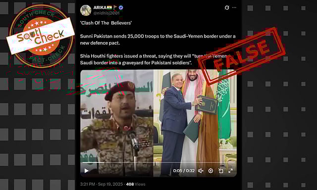 A social media user shared the video with a caption that reads, “ Clash Of The Believers’ Sunni Pakistan sends 25,000 troops to the Saudi–Yemen border under a new defence pact. Shia Houthi fighters issued a threat, saying they will ‘turn the Yemen–Saudi border into a graveyard for Pakistani soldiers’.”