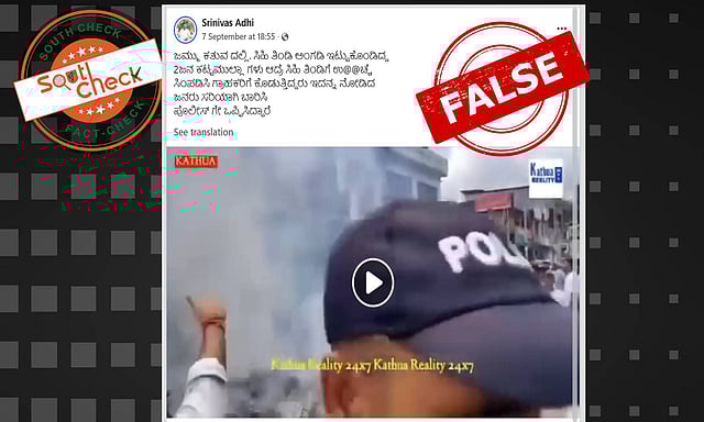 A social media user shared the video and wrote, “In Kathua, Jammu, two Muslims were seen spraying urine on sweets and serving them to customers. People who saw this beat them up and handed them over to the police.” (Translated from Kannada)