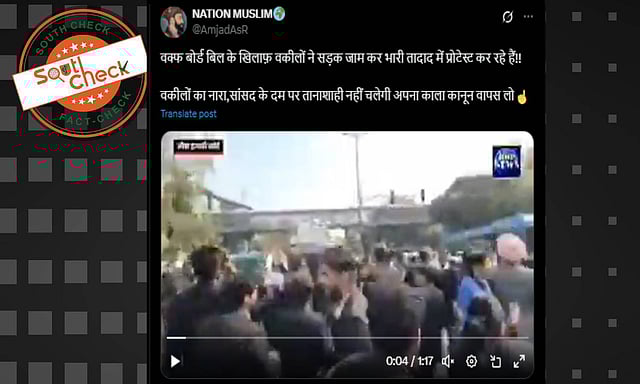 A social media user shared the video and wrote, “Lawyers are protesting the Waqf Bill in large numbers by blocking roads.” (Translated from Hindi)