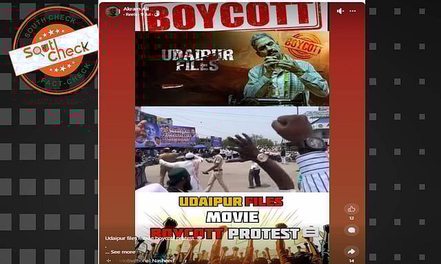 Social media users are sharing the video with a caption suggesting that the viral video is of Muslims protesting the release of Udaipur Files.
