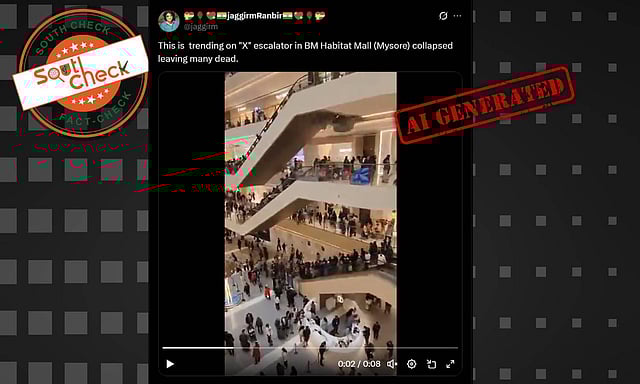 A social media user shared the video with a caption that reads, “Escalators collapsed and many dead at BM Habitat Mall, Mysore.”