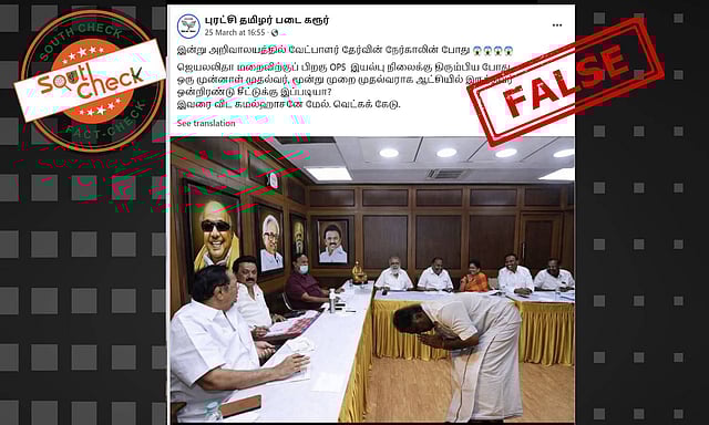 In the above context, an image of O Panneerselvam has gone viral on social media in which he is seen bowing in front of DMK president and Chief Minister of Tamil Nadu MK Stalin. The image is shared with a caption suggesting that Panneerselvam bowed in front of Stalin when he went to join the party.