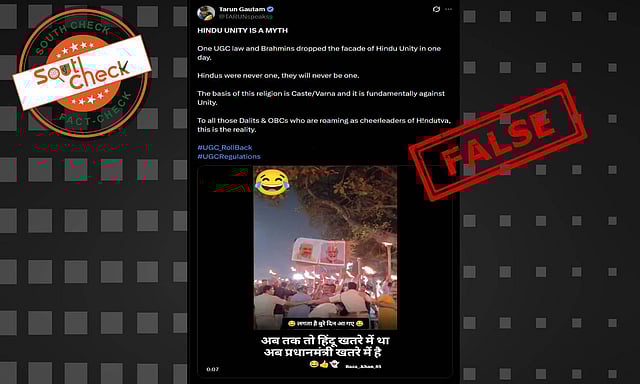 A social media user shared the video with a caption that reads, “HINDU UNITY IS A MYTH One UGC law and Brahmins dropped the facade of Hindu Unity in one day. Hindus were never one, they will never be one. The basis of this religion is Caste/Varna and it is fundamentally against Unity. To all those Dalits & OBCs who are roaming as cheerleaders of H!ndutva, this is the reality.#UGC_RollBack #UGCRegulations (sic)”