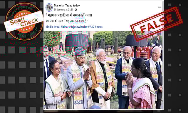 On a Google reverse image search, we found that the same image was shared by former President Ramnath Kovind on January 26, with a caption, “Delighted to attend the ‘At Home’ reception at Rashtrapati Bhavan hosted by Hon’ble President Smt. Droupadi Murmu Ji on the occasion of Republic Day. It was a pleasure to meet Mr Antonio Costa, President of the European Council, and Ms Ursula von der Leyen, President of the European Commission.”