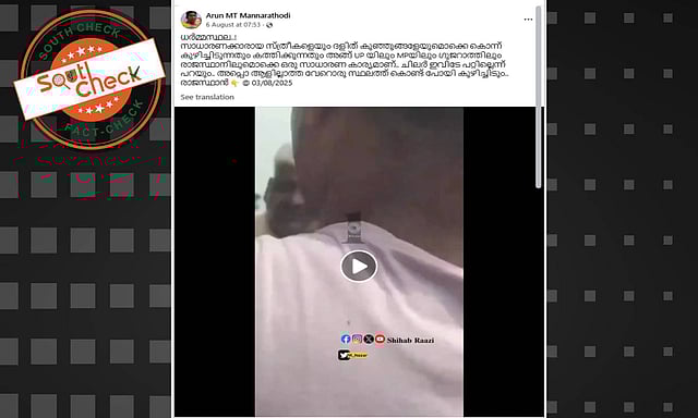 A social media user shared the video with a caption that reads, “Dharmasthala! Killing and burying women and Dalit children is a common thing in UP, MP, Gujarat and Rajasthan.” (Translated from Malayalam)