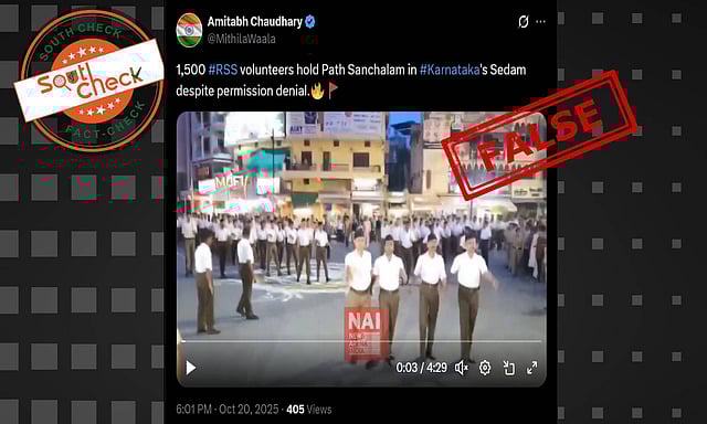 In the above context, a video is being widely shared online in which Rashtriya Swayamsevak Sangh (RSS) volunteers are seen taking out a procession. The video is shared with a caption suggesting that the procession was taken out in Karnataka’s Sedam despite not having permission.