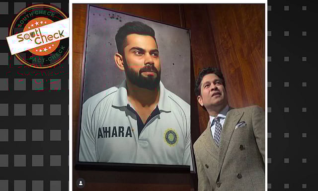 An image of former Indian cricket player Sachin Tendulkar is being widely shared on social media. In the image, he can be seen standing and posing beside the photo of cricketer Virat Kohli.