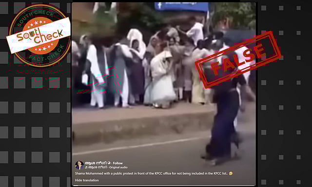Those sharing the video claim it shows Congress leader Shama Mohamed staging a protest in front of the KPCC office after not being included in the reorganisation.