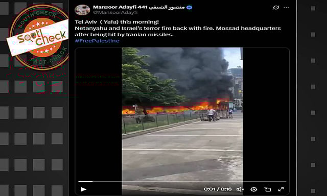 A social media user shared the video with a caption that reads, “Tel Aviv (Yafa) this morning! Netanyahu and Israel’s terror fire back with fire. Mossad headquarters after being hit by Iranian missiles.”