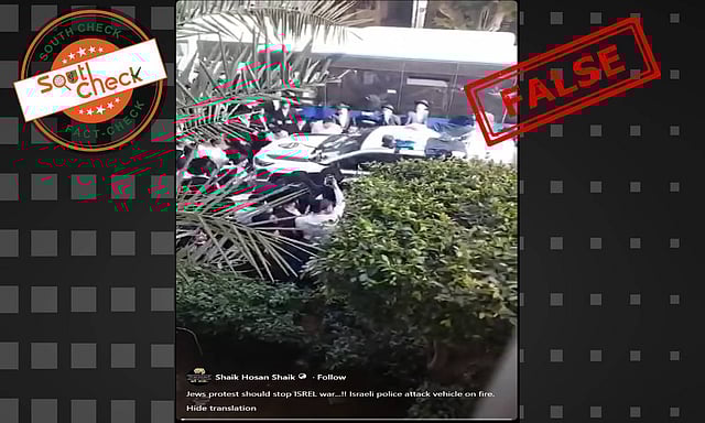 A social media user shared the video with a caption that reads, “Jews protest should stop Israel war!! Israeli police attack vehicle on fire.”
