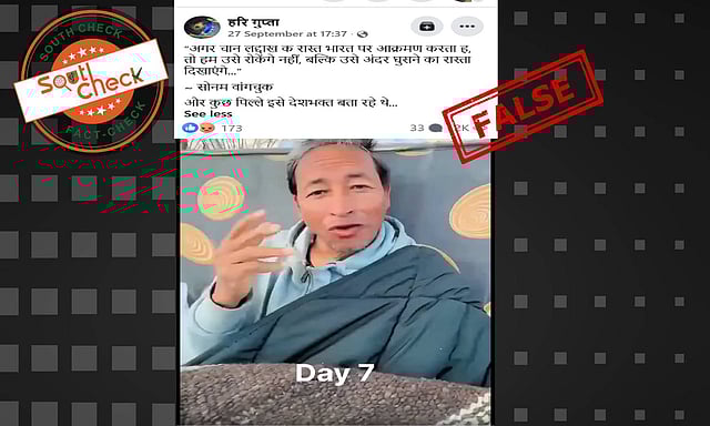 In the above context, a 1 minute 19 seconds video of video of Sonam Wangchuk has gone viral on social media. In the video, we can see him sitting inside a blanket with Indian national flag in the background and “Day 7” text embedded on the video. He says, “When China enters, people of Ladakh give their lives to stop them. But now, if Indian government is not doing anything for us, then next time if they come, we won’t stop them. Why will we give our lives?”