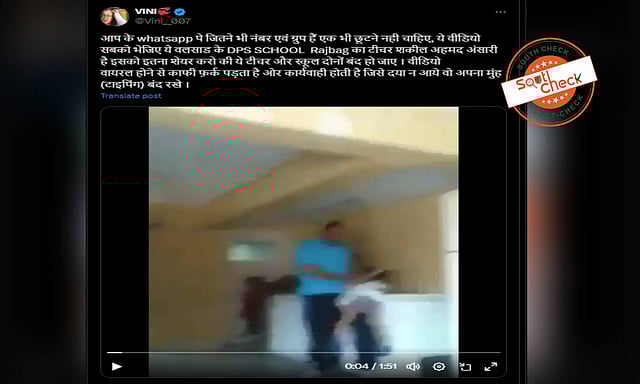 A video is being widely shared on social media in which a man is seen assaulting a group of children one by one. Those sharing the video claim that the man is a Muslim teacher named Shakeel Ahmad Ansari at DPS school in Valsad, Gujarat.