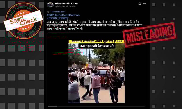 A social media user shared the video with a caption that reads, “#BJPHataoDeshBachao #VoteChor_GaddiChhod Now the public is waking up. The Modi government has made life difficult for the common man. Inflation, unemployment, GST and the dominance of goons on the streets. Where is an honest, simple citizen supposed to go?” (Translated from Hindi)