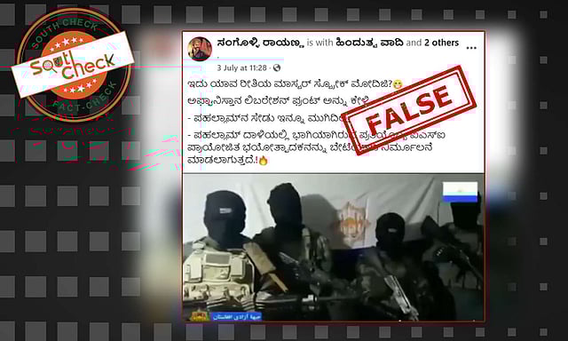ನಾಲ್ವರು ಮುಸುಕುಧಾರಿಗಳು ಬಂದೂಕುಗಳನ್ನು ಹಿಡಿದು ಕ್ಯಾಮೆರಾ ಮುಂದೆ ಮಾತನಾಡುತ್ತಿರುವುದನ್ನು ತೋರಿಸುವ ವೀಡಿಯೊವೊಂದು ವೈರಲ್ ಆಗುತ್ತಿದ್ದು, ಲಿಬರೇಶನ್ ಫ್ರಂಟ್ ಆಫ್ ಅಫ್ಘಾನಿಸ್ತಾನದ ಸದಸ್ಯರು ಪಹಲ್ಗಾಮ್ ದಾಳಿಗೆ ಸೇಡು ತೀರಿಸಿಕೊಳ್ಳಲಾಗುವುದು ಎಂದು ಹೇಳುತ್ತಿದ್ದಾರೆ ಎಂಬ ಹೇಳಿಕೆ ಇದೆ.