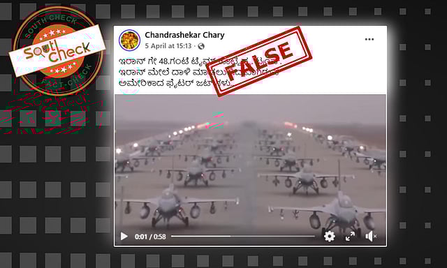 ಇರಾನ್ನಲ್ಲಿ ಬೃಹತ್ ವೈಮಾನಿಕ ದಾಳಿಗೆ ಸಿದ್ಧವಾಗಿರುವ ಅಮೆರಿಕದ ಯುದ್ಧ ವಿಮಾನಗಳನ್ನು ರನ್ವೇಯಲ್ಲಿ ಸಾಲಾಗಿ ನಿಲ್ಲಿಸಿರುವುದನ್ನು ತೋರಿಸುವ ವೀಡಿಯೊವೊಂದು ಸಾಮಾಜಿಕ ಮಾಧ್ಯಮದಲ್ಲಿ ವೈರಲ್ ಆಗುತ್ತಿದೆ. ಫೇಸ್ಬುಕ್ ಬಳಕೆದಾರರೊಬ್ಬರು ಈ ವೀಡಿಯೊವನ್ನು ಹಂಚಿಕೊಂಡು, ‘‘ಇರಾನ್ಗೆ 48 ಗಂಟೆ ಟೈಮ್ ಕೊಟ್ಟಿದ್ದ ಟ್ರಂಪ್. ಇರಾನ್ ಮೇಲೆ ದಾಳಿ ಮಾಡಲು ಸಿದ್ದವಾಗಿರುವ ಅಮೇರಿಕಾದ ಫೈಟರ್ ಜಟ್ ಗಳು’’ ಎಂದು ಬರೆದುಕೊಂಡಿದ್ದಾರೆ. (Archive)