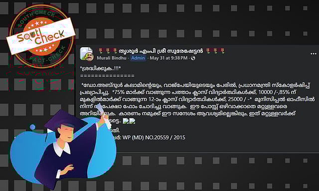 പ്രധാനമന്ത്രി ദേശീയതലത്തില് സ്കോളര്ഷിപ്പ് പ്രഖ്യാപിച്ചെങ്കില് അതില് ഹൈക്കോടതി ഉത്തരവിനെന്ത് പ്രസക്തിയെന്നാണ് ആദ്യം പരിശോധിച്ചത്. പ്രചരിക്കുന്ന സന്ദേശത്തിലെ ഹൈക്കോടതി ഉത്തരവ് പരിശോധിച്ചതോടെ ഇതിന് സ്കോളര്ഷിപ്പുമായി യാതൊരു ബന്ധവുമില്ലെന്ന് വ്യക്തമായി.