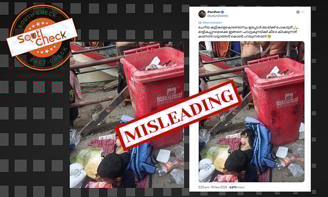 മണ്ഡലകാലം ആരംഭിച്ചതോടെ ശബരിമലയിലെ സൗകര്യങ്ങളുടെ അപര്യാപ്തതയും ചര്ച്ചയാവുകയാണ്. നിരവധി തീര്ത്ഥാടകരാണ് മണ്ഡലകാലത്തിന്റെ ആദ്യദിനങ്ങളില് തന്നെ ശബരിമലയിലെത്തിയത്. മുതിര്ന്നവരും കുട്ടികളുമടക്കം വലിയ ജനസഞ്ചയം ശബരിമലയിലെത്തിത്തുടങ്ങിയതോടെ നിയന്ത്രണാതീതമായ തിരക്കും വാര്ത്തയായിരുന്നു. ഇതിന് പിന്നാലെയാണ് ശബരിമലയിലെ അസൗകര്യങ്ങളുടെ നേര്ച്ചിത്രമെന്ന നിലയില് ഒരു ചിത്രം സമൂഹമാധ്യമങ്ങളില് പ്രചരിക്കുന്നത്. ശബരിമലയിലെ ചവറ്റുകൊട്ടയ്ക്കരികെ കിടന്നുറങ്ങുന്ന കൊച്ചു മാളികപ്പുറത്തിന്റെ ചിത്രമാണ് പ്രചരിക്കുന്നത്.