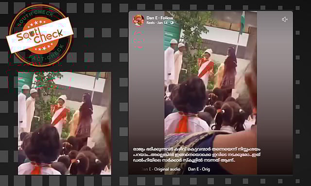 ഡല്ഹിയിലെ സര്ക്കാര് സ്കൂളില് ദേവീവേഷമണിഞ്ഞ കുട്ടിയുടെ തലയില് മുസ്ലിം വേഷമണിഞ്ഞ മറ്റ് കുട്ടികള് ഹിജാബ് ധരിപ്പിക്കുന്നതെന്ന തരത്തില് വീഡിയോ സമൂഹമാധ്യമങ്ങളില് പ്രചരിക്കുന്നു. രാജ്യംഭരിക്കുന്നവര് കഴിവുകെട്ടവരാണെന്നും അതുകൊണ്ടാണ് ഇത്തരം സംഭവങ്ങള് നടക്കുന്നതെന്നും ആരോപിച്ചുകൊണ്ടാണ് വീഡിയോ പങ്കുവെച്ചിരിക്കുന്നത്.