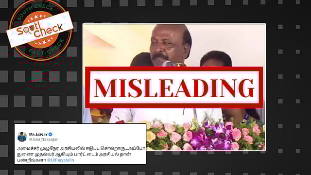 சவுத் செக்கின் ஆய்வில் கடந்த 2018ஆம் ஆண்டு நிகழ்ச்சி ஒன்றில் கலந்து கொண்ட உதயநிதி ஸ்டாலினிடம் அமைச்சர் கோரிக்கை வைத்தது பற்றி நினைவு கூறியதை தவறாக திரித்து பரப்பி வருகின்றனர் என்று தெரியவந்தது.