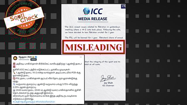 இச்சூழலில், ஐசிசி அமைப்பு பாகிஸ்தான் கிரிக்கெட் அணிக்கு ஓராண்டு தடை விதித்துள்ளதாக ஒரு செய்திக்குறிப்பு சமூக வலைதளங்களில் பரவியது. அதில், பாகிஸ்தான் கிரிக்கெட் லீக் போட்டிகளுக்கு ஓராண்டு தடை, 2040 ஆம் ஆண்டு வரை ஐசிசி தொடர்களை நடத்தத் தடை மற்றும் பாகிஸ்தானின் ஆண்டு வருவாய் 5.75 சதவீதத்திலிருந்து 2.25 சதவீதமாகக் குறைப்பு போன்ற அறிவிப்புகள் இடம் பெற்றிருந்தன.