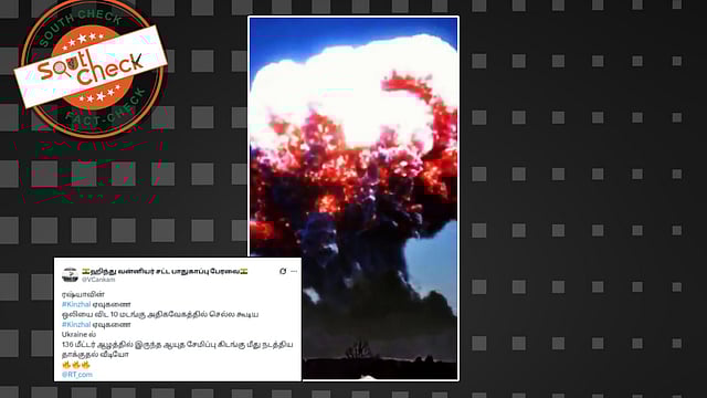 “ரஷ்யாவின் #Kinzhal ஏவுகணை ஒலியை விட 10 மடங்கு அதிகவேகத்தில் செல்ல கூடிய #Kinzhal ஏவுகணை Ukraine ல் 136 மீட்டர் ஆழத்தில் இருந்த ஆயுத சேமிப்பு கிடங்கு மீது நடத்திய தாக்குதல் வீடியோ” என்ற கேப்ஷனுடன் மாபெரும் குண்டுவெடிப்பு நிகழ்வு ஏற்படுவது போன்ற காணொலி சமூக வலைதளங்களில் (Archive) பகிரப்பட்டு வருகிறது.