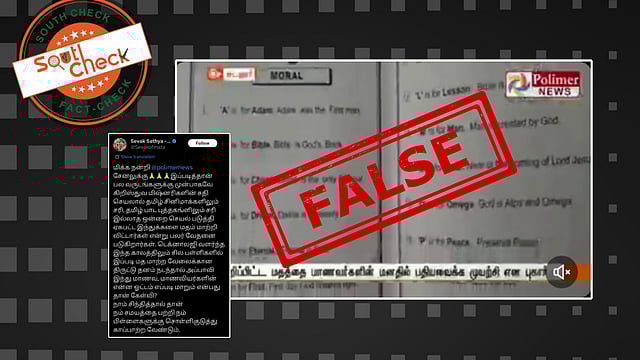 கடலூர் மாவட்டம் வடலூரில் உள்ள ஒரு பள்ளியில் ’A for Adam’, ‘B for Bible’ எனக் கிறிஸ்துவ மதம் குறித்த குறிப்புகள் இடம்பெற்றுள்ளதாக பாலிமர் ஊடகத்தின் செய்தி ஒன்று சமூக வலைதளங்களில் வைரலாகி வருகிறது. இச்சம்பவம் திமுக ஆட்சியில் நடைபெற்றதாக கூறி பரப்பி வருகின்றனர்.