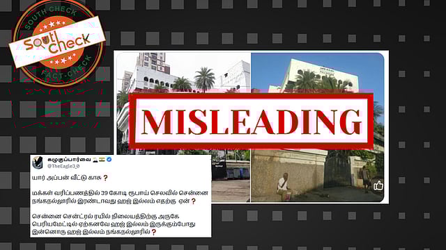 இந்நிலையில்,”யார் அப்பன் வீட்டு காசு ? மக்கள் வரிப்பணத்தில் 39 கோடி ரூபாய் செலவில் சென்னை நங்கநல்லூரில் இரண்டாவது ஹஜ் இல்லம் எதற்கு ஏன் ? சென்னை சென்ட்ரல் ரயில் நிலையத்திற்கு அருகே பெரியமேட்டில் ஏற்கனவே ஹஜ் இல்லம் இருக்கும்போது இன்னொரு ஹஜ் இல்லம் நங்கநல்லூரில்?” என்ற கேள்வியுடன் புகைப்படம் சமூக வலைதளங்களில் (Archive) வைரலாகி வருகிறது.