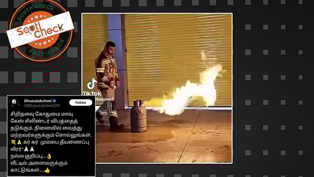 ஆனால், சிறிதளவு கோதுமை மாவு கேஸ் சிலிண்டர் விபத்தைத் தடுக்கும் என்ற தகவலுடன் சமூக வலைதளங்களில் (Archive) காணொளி ஒன்று வைரலாகி வருகிறது. அதில், தீயணைப்பு வீரர் ஒருவர் கேஸ் சிலிண்டரில் எரியும் நெருப்பை பொடி போன்ற ஒரு பொருளைக் கொண்டு அணைக்கிறார். பொடி போன்ற பொருள் கோதுமை மாவு என்றும் அது நெருப்பை அணைக்கும் என்றும் கூறி இதனை பகிர்ந்து வருகின்றனர்.