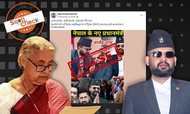 సౌత్ చెక్ ఈ క్లెయిమ్ తప్పు అని కనుగొంది. నేపాల్లో నిరసనల అనంతరం తాత్కాలిక ప్రధానిగా సుశీల కర్కి ప్రమాణం స్వీకారం చేశారు.