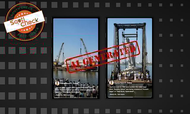 బుద్ధ విగ్రహం హైదరాబాద్ హుస్సేన్ సాగర్లో 1992లో స్థాపించబడింది. అయితే వైరల్ అవుతున్న వీడియో మాత్రం ఏఐతో రూపొందించబడింది. కాబట్టి ఈ క్లెయిమ్ తప్పు అని సౌత్ చెక్ నిర్ధారించింది.