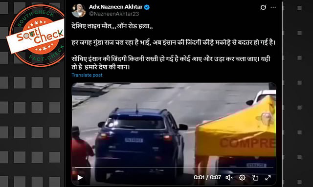 A social media user (warning: violent visuals) shared the video with a caption that reads, “Watch murder on the road. Brother, there is goonda raj everywhere. Now, the life of humans has become worse than that of insects. Think about how cheap human life has become, someone can come and steal it and go away. This is the pride of our country.” (Translated from Hindi)