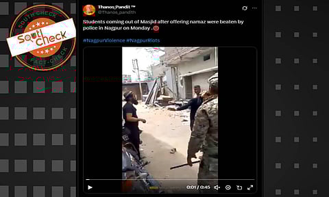 In the above context, a video is being widely shared on social media in which some police officers are seen thrashing youth. The video is shared with a caption suggesting that the video is from the Nagpur violence and shows police beating the youth who were coming out of the mosque after offering Friday prayers in Nagpur.
