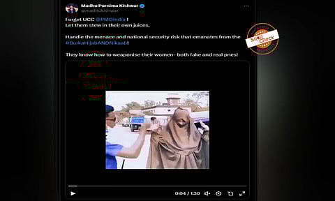 A social media user shared the video with the caption, “Forget UCC, PMOIndia! Let them stew in their own juices. Handle the menace and national security risk that emanates from the #BurkaHijabANDNikaab! They know how to weaponise their women- both fake and real ones! (sic)” (Archive)