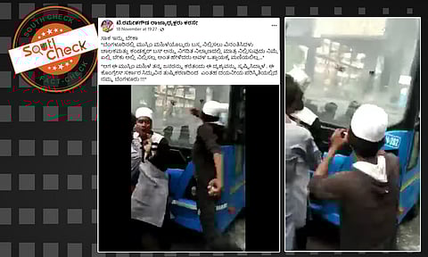 ಮುಸ್ಲಿಂ ಸಮುದಾಯದವರೆಂದು ಹೇಳಲಾದ ಹಲವಾರು ಪುರುಷರು ಸ್ಕಲ್ ಕ್ಯಾಪ್ಗಳನ್ನು ಧರಿಸಿ ಕಲ್ಲು ತೂರಾಟ ನಡೆಸಿ ನೀಲಿ ಬಣ್ಣದ ಬಸ್ ಅನ್ನು ಧ್ವಂಸಗೊಳಿಸುತ್ತಿರುವ ವೀಡಿಯೊ ಸಾಮಾಜಿಕ ಮಾಧ್ಯಮದಲ್ಲಿ ವೈರಲ್ ಆಗುತ್ತಿದೆ. ಬಳಕೆದಾರರು ಇದು ಕರ್ನಾಟಕದಲ್ಲಿ ಇತ್ತೀಚೆಗೆ ನಡೆದ ಘಟನೆ ಎಂದು ಹೇಳುತ್ತಿದ್ದು, ಮುಸ್ಲಿಂ ಮಹಿಳೆಯೊಬ್ಬರು ಬಸ್ ನಿಲ್ಲಿಸಲು ಕೇಳಿದಾಗ ಚಾಲಕ ಆಕೆಯ ಮನೆ ಬಳಿ ಬಸ್ ನಿಲ್ಲಿಸದ ಕಾರಣ ಮುಸ್ಲಿಮರು ಬಸ್ ಮೇಲೆ ದಾಳಿ ಮಾಡಿದ್ದಾರೆ ಎಂದು ಪೋಸ್ಟ್ ಹೇಳುತ್ತಿದೆ.